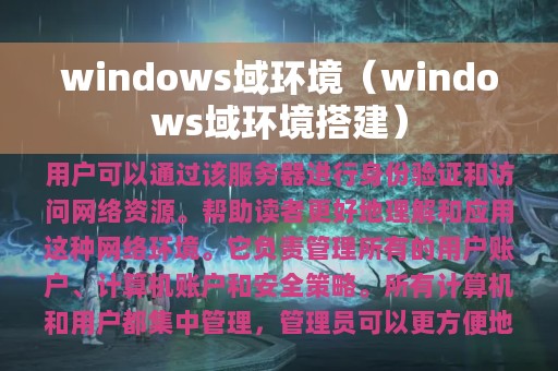 3. 本文将介绍Windows域环境的基本概念、优势和设置方法,帮助读者更好地理解和应用这种网络环境。