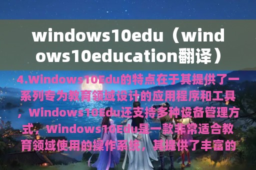 4. Windows 10 Edu的特点在于其提供了一系列专为教育领域设计的应用程序和工具,如Microsoft Classroom、OneNote、Minecraft Education Edition等,可以帮助教师更好地组织课堂教学,提高学生的学习效率。
