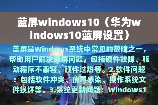 蓝屏Windows10是一个常见的问题,但是通过检查硬件、更新驱动程序、卸载软件、安装杀毒软件和修复操作系统等方法,可以有效地解决问题。希望本文能够帮助用户解决蓝屏问题,提高使用体验。
