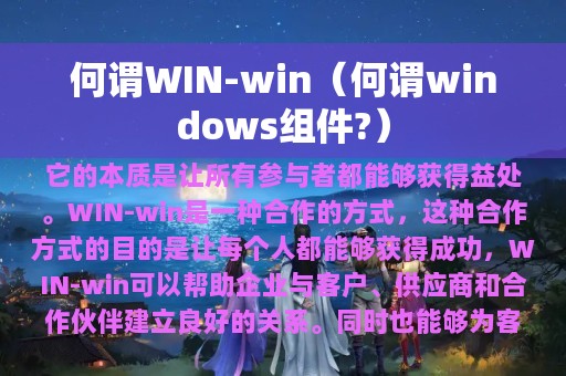 1. 何谓WIN-win?
