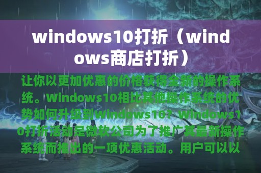 Windows 10打折活动是微软公司为了推广其最新操作系统而推出的一项优惠活动。