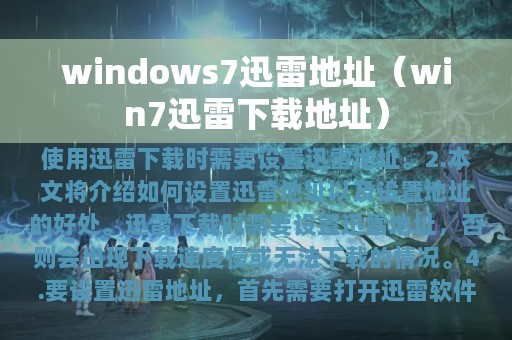 1. 迅雷是一款常用的下载工具,而在Windows7系统中,使用迅雷下载时需要设置迅雷地址。
