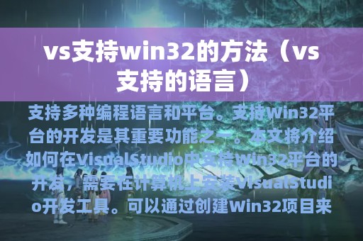Visual Studio是一款功能强大的开发工具,支持多种编程语言和平台。其中,支持Win32平台的开发是其重要功能之一。本文将介绍如何在Visual Studio中支持Win32平台的开发,帮助开发者更好地利用这一功能。