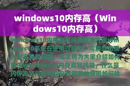 Windows 10系统在使用过程中,可能会出现内存高写的问题,导致系统运行缓慢,甚至死机。本文将为大家介绍如何解决Windows 10内存高写问题,包括以下内容: