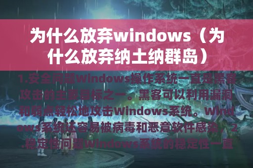 在计算机领域,Windows操作系统一直是最流行的操作系统之一。然而,随着时间的推移,越来越多的人开始放弃Windows,转向其他操作系统。那么,为什么会有这种趋势呢?本文将探讨一些原因。