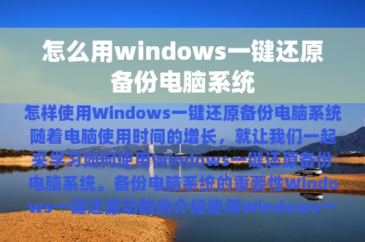怎样使用Windows一键还原备份电脑系统