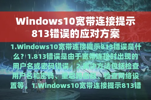 当我们使用Windows10系统进行宽带连接时,有时会出现“错误813:您的计算机不支持网络协议”等提示。这个错误提示意味着您的计算机无法与您的宽带网络建立连接。