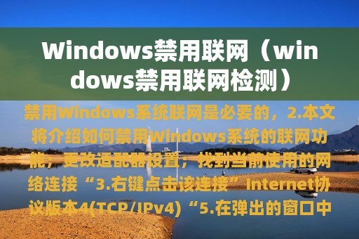 2. 本文将介绍如何禁用Windows系统的联网功能;