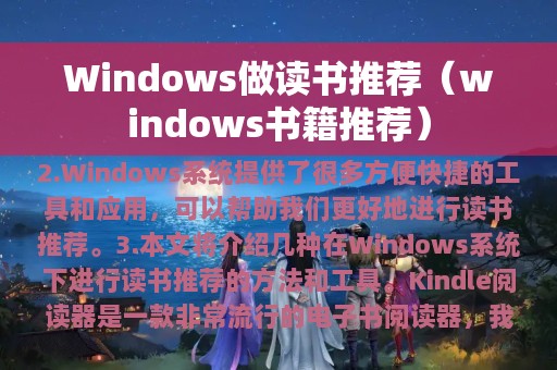 2. Windows系统提供了很多方便快捷的工具和应用,可以帮助我们更好地进行读书推荐。