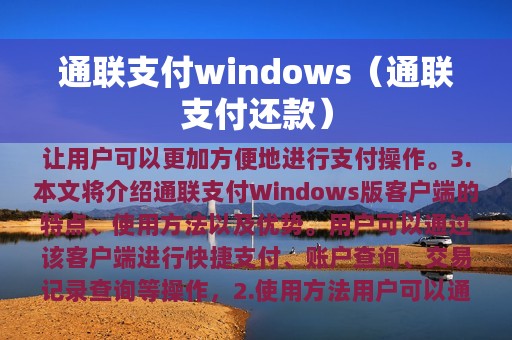 3. 本文将介绍通联支付Windows版客户端的特点、使用方法以及优势。