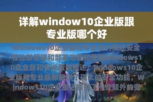 Windows 10企业版和专业版哪个更好?这是许多人在选择操作系统时经常会遇到的问题。在本文中,我们将详细讨论这两个版本的区别和优缺点,以帮助您更好地了解它们之间的区别,从而选择最适合您的操作系统。