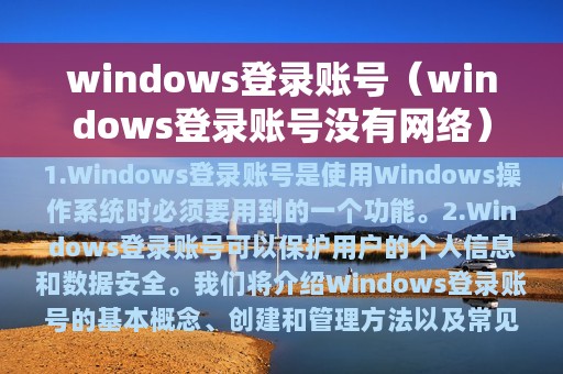 1. Windows登录账号是使用Windows操作系统时必须要用到的一个功能。