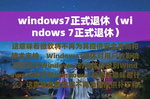 随着时间的推移,Windows 7正式退休了。这意味着微软将不再为其提供安全更新和技术支持,这可能会给使用Windows 7的用户带来风险和不便。在这篇文章中,我们将探讨Windows 7退休的影响以及如何应对。