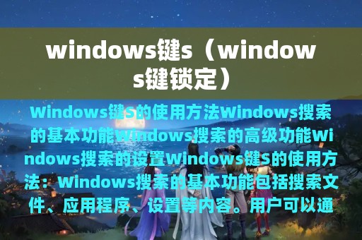 Windows键S是Windows系统中的一个快捷键,可以快速打开Windows搜索。Windows搜索是Windows系统中的一个非常实用的工具,可以帮助用户快速查找文件、应用程序、设置等内容。本文将介绍Windows键S的使用方法以及Windows搜索的相关内容。