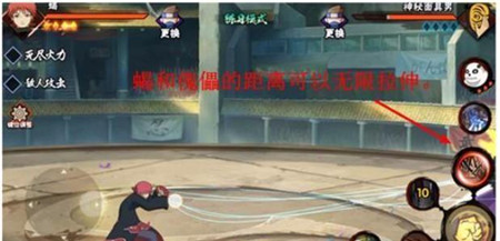 首先了解蝎如何去操控傀儡。蝎移动时,傀儡会在0.5秒后移动到本体所在的位置,就像是本体影子一样。而当傀儡远离后,也会在0.5秒后回到本体正前方。若一直保持普攻或者忍术攻击,蝎和傀儡的距离可以无限拉伸。