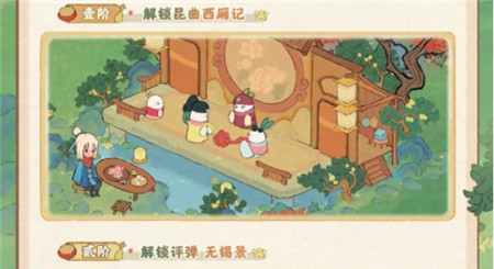 山民们可以在此创物池中获取甲等建筑「苏萝戏台」,聆听古色古香的昆曲和评弹。