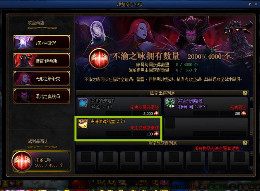 玩家可以在不渝之咏商店中使用100不渝之咏兑换 ,没有兑换次数限制,获得的史诗灵魂可以通过NPC商店1:1兑换成灵魂之源。