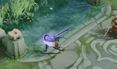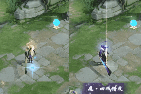 技能特效方面我就不与伴生皮肤做截图对比了,单看最基础的人形态普攻紫色拖尾粒子特效就不是勇者品质皮肤可以相比的。