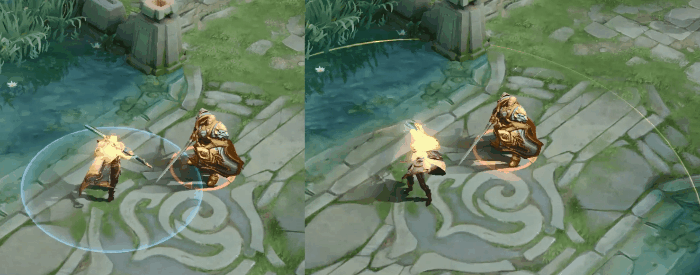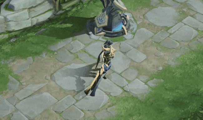 二技能紫色的特效有种山崩之感,很明显的从原皮的地面一维线条提升到了二维的平面光波上。并且释放时语音也从沉重的“咿呀“变成了更轻盈的”嘿呀“。