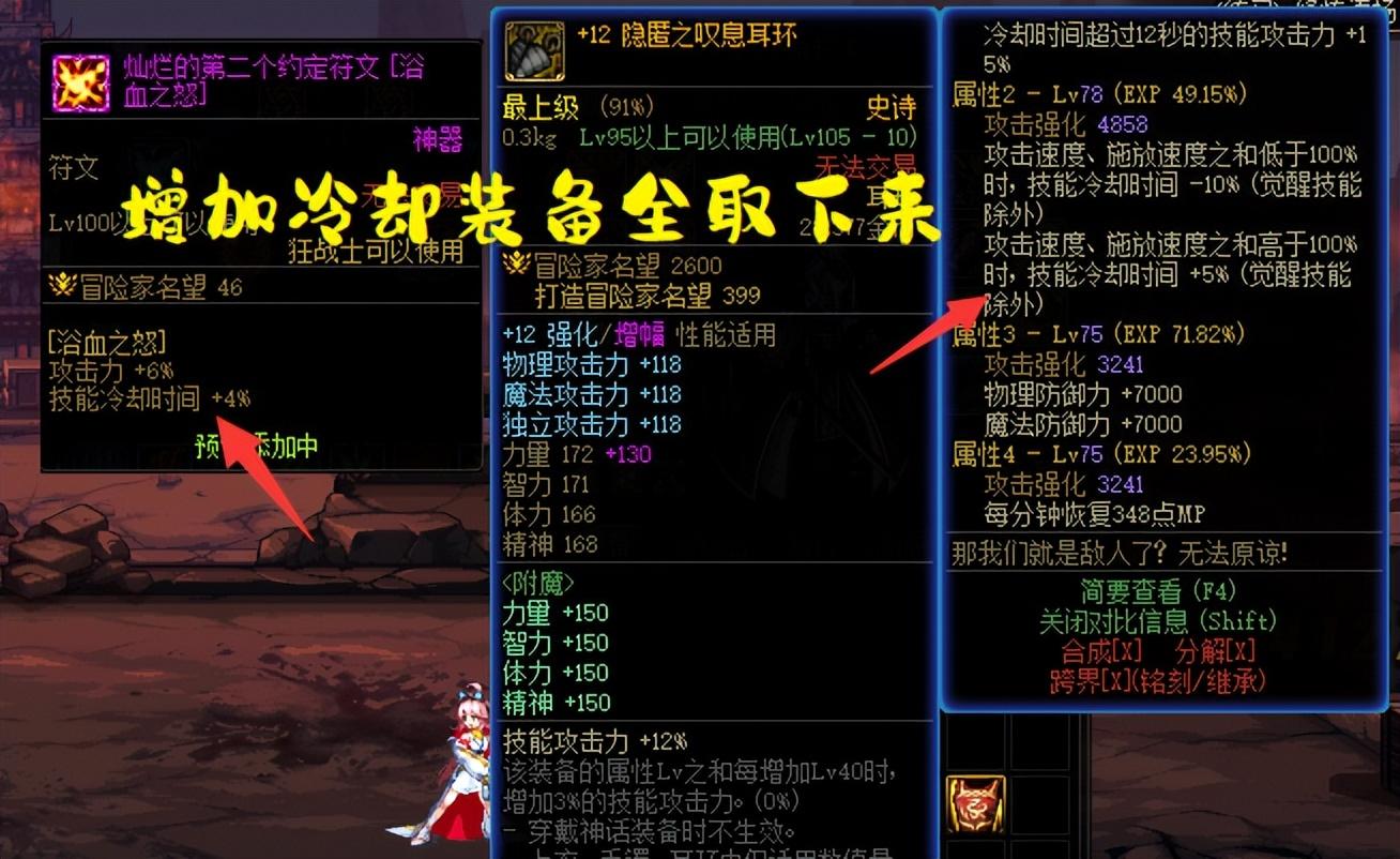 1、装备选择上,带上“宠物魔法石”,取下“钻头耳环”,宠物魔法石减少8%技能冷却,而钻头耳环增加5%技能冷却,所以是不能带钻头耳环的,可以用引力耳环、或者自定义耳环期待。(首饰选择战神项链或者双音戒指之一即可)