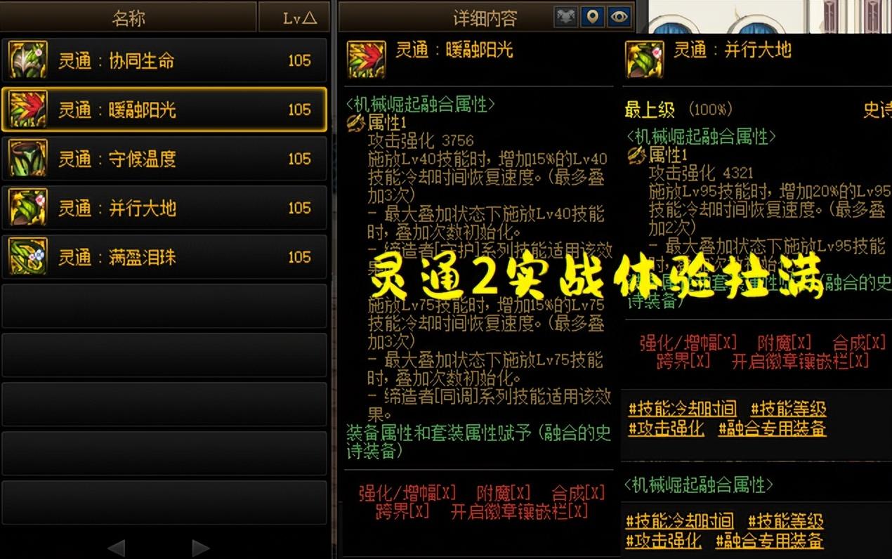 3、最核心的地方在于,防具贴膜选择“灵通头肩”,增加lv40/lv75技能的15%冷却速度,可叠加3次。