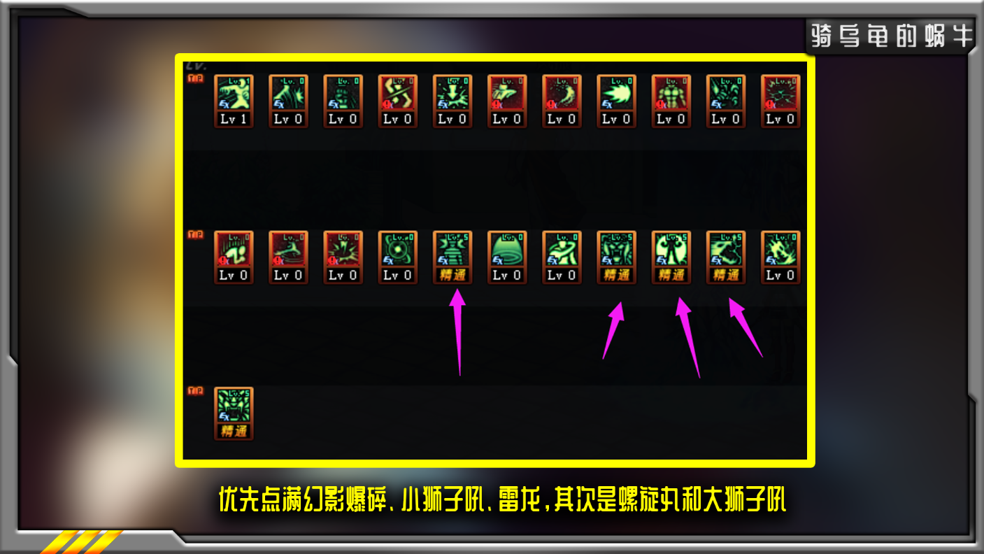 如果玩家选择的是无暇手套,可以考虑狮子吼的SP给其他的技能,但100级版本2把武器都是完美毕业的,白虎手套搭配歧路鞋和小狮子吼,伤害高,CD极短,范围又非常的大,还不需要蓄力,无论是续航补刀都是完美的技能。
