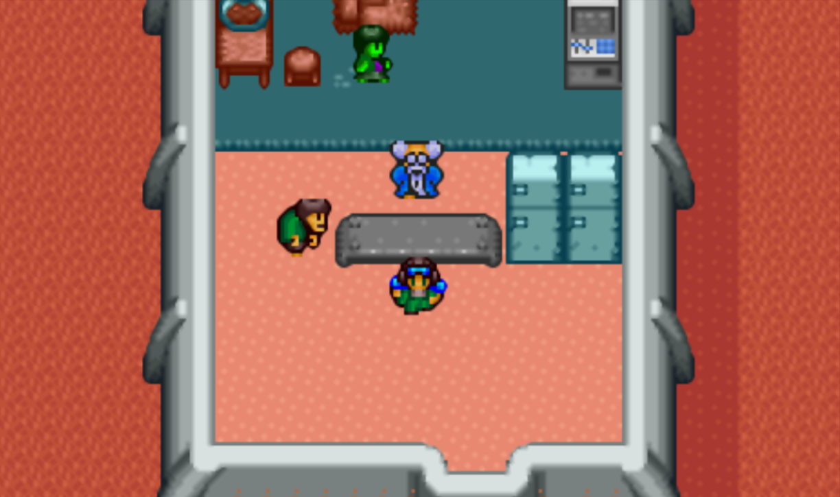 下楼梯,打开计算机,选择“on”,然后用传送隧道回到马多!