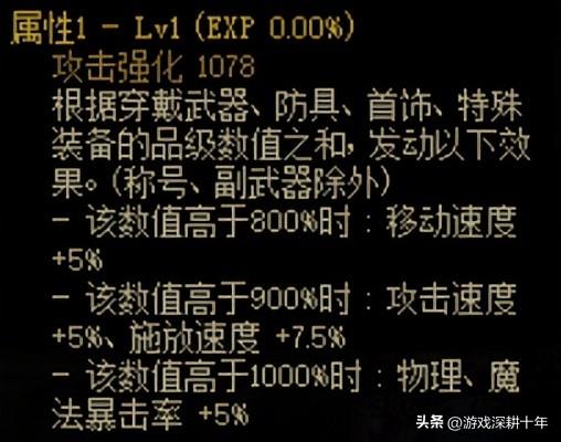 纹章、宠物装备、名称装饰卡),不包括武器、技能、附魔,需要自己计算清楚,可以去修炼场查看触发情况
