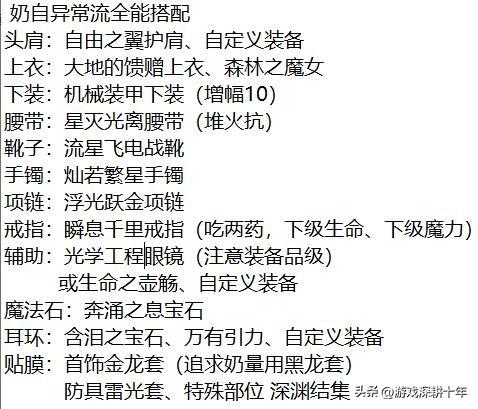 奶职业搬砖主要是缺少伤害,装备搭配可以用这套自异常流搭配