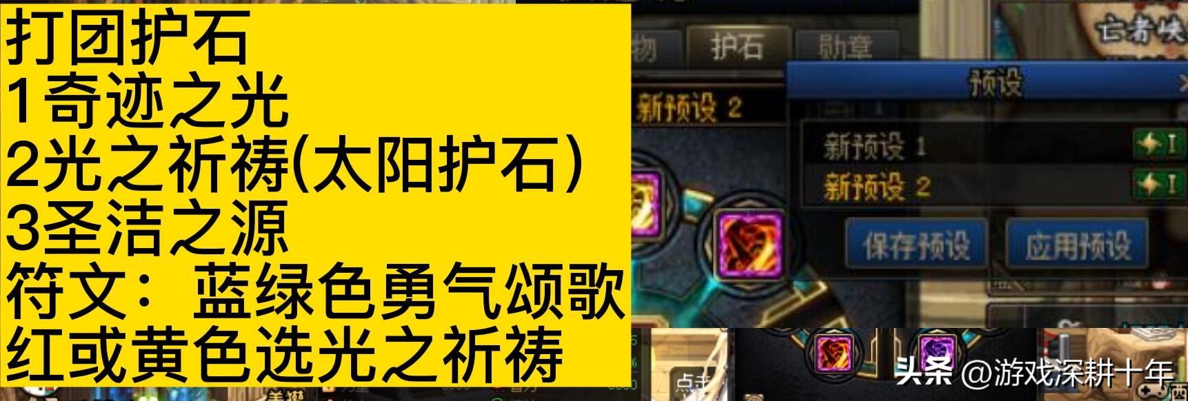 打团的护石推荐这3个,可以在护石这里预设2套护石符文,一键切换