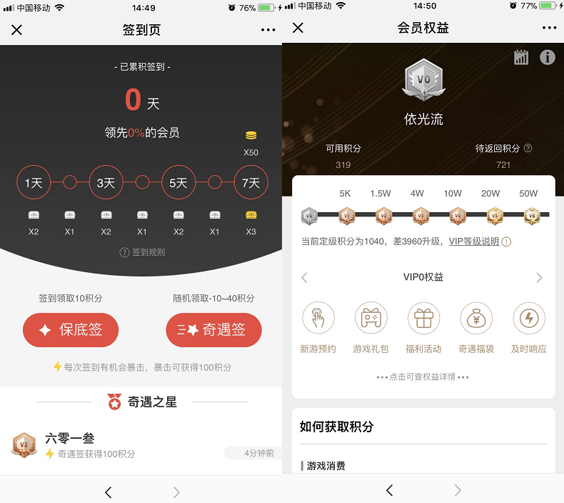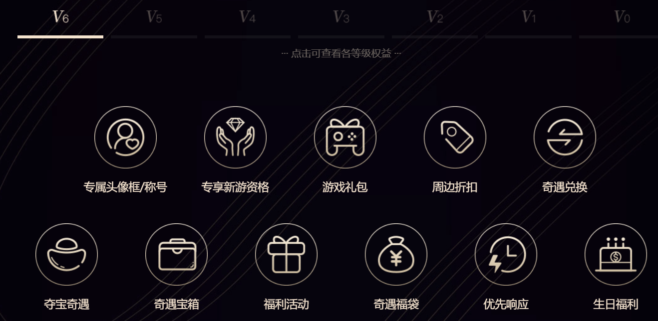 目前,VIP等级从0到6一共分为7个等级,需要的积分由0、5000到20万、50万不等,积分的计算方式官方并未公开,但明显与游戏内的活跃行为、付费行为,以及在会员俱乐部内的活跃行为强相关。换句话说,网易游戏的忠实用户,将获得更多的积分。游戏会员能享受到的权益有福利和服务两类。