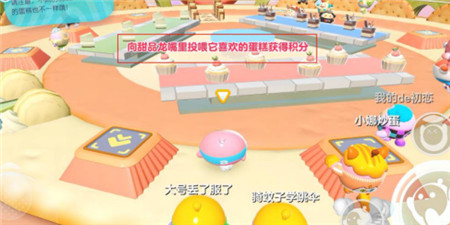 蛋仔派对投喂甜品龙个人积分赛关卡位于一张圆形的地图上。地图外形是一块巨大的蛋糕,玩家需要将正确的甜品类型投入对应的甜品龙口中,方可获得积分。甜品定时刷新,但数量有限。