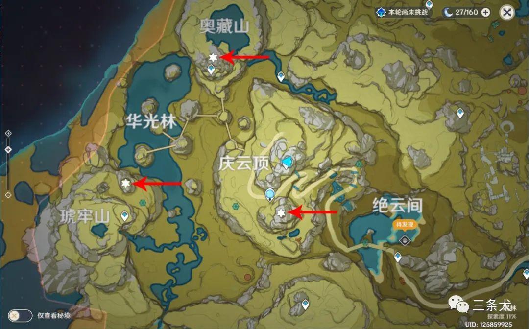 在庆云顶得知一共有三座仙鹤雕像,需要把三个雕像面朝庆云顶来激活机关。