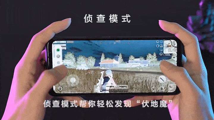 另外,ROG游戏手机5还内置了许多游戏滤镜可供玩家们使用。其中吃鸡「侦查模式」滤镜能够提高游戏画面反差色,让“伏地魔”无处遁形,避免被对手偷袭的可能性。例如,像下面这张GIF图显示的那样,在开启「侦查模式」后,我们能够更明显地看清草丛中隐藏的敌人。