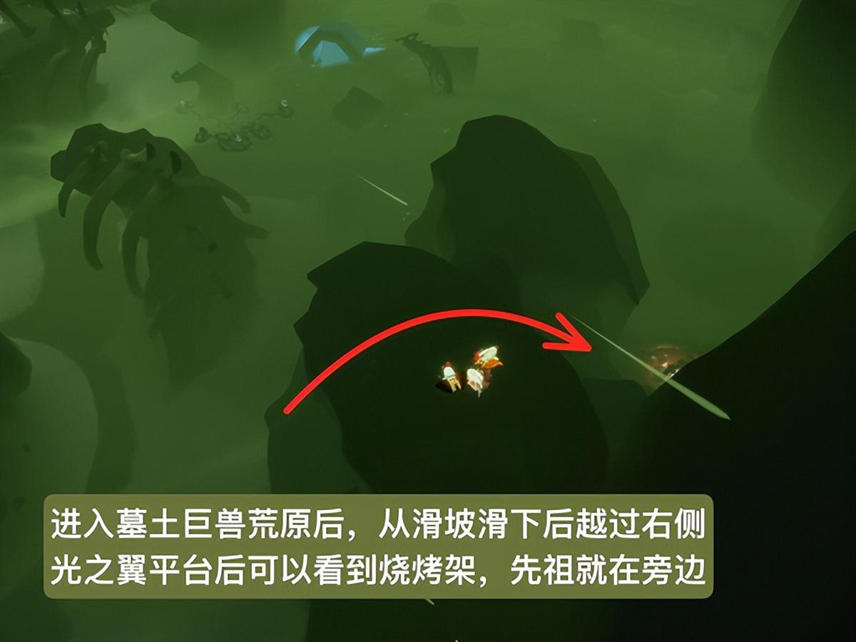 2、在荒原上,玩家需要先从滑坡上下去后往右走翻过光翼平台;