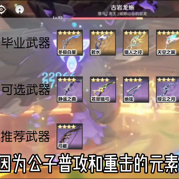 主词条选择攻击沙,水伤杯暴击爆伤头,汤达人武器几乎都能用,毕业武器各极、若水、猎人天空、飞雷、魔术弓可选武器静之曲。苍翠猎弓、绝弦、蒙云之月;往下近侍、破魔之弓、阿莫斯之弓、黑岩战功不推荐武器弓藏,因为公子普攻和重击的元素附着CD独立计算。