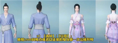 3、清风/豆蔻:使用2500良师点兑换,或者是以徒弟的身份第一次完成拜师即可获取。