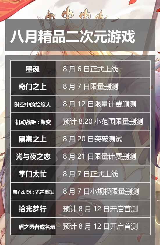 OK,以上就是8月精品二次元游戏的全部内容,类型多样,大厂都拿出了各自看家的本事,就看谁能笑傲八月。