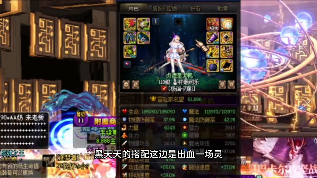 接下来,让我们看看黑天天的装备搭配。这里选择了“出血一场灵”、“黑灵缠绕手镯”、“蓝色徽商独立攻击力”和“原子核项链”。此外,我们还需要选择“恩特自定义戒指”,以增加出血伤害和暗属性强化。左槽选择“恩特自定义左槽”,可以增加五个技能的攻击力,并且术抗之和高于250时,还可以增加15%的出血伤害。此外,我们还需要选择“龙足七技功”和“灼烧五技功”的附魔,以增加属性强化和灼烧伤害。最后,我们选择“三联通两列”的搭配,以增加攻击强化和速度。