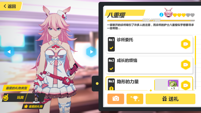 崩坏3在暑假期间开启了夏日活动,其中有一个送礼环节,每天给女武神赠送礼物,达到一定数量时,女武神的好感度也会提升哟!