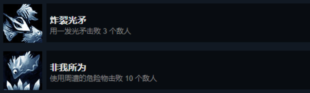 emmm~,前两者达成条件就是怎么暴力,怎样来,我个人建议简单模式下走完速通流程通关后,再收集点碎片和升级伤害,上精灵弓箭短距离分裂+升满所有增加伤害的碎片,包括鲁莽,开2颗远古精灵树增伤。准备工作OK后,就去找蜘蛛BOSS,上演摇头表演,3个阶段刚开战时,预瞄boss的头部玩命射爆就完事了;打恶臭蛤蟆BOSS的话,跑到左边墙上打就可以了,BOSS的暗波反弹砸BOSS伤害还挺可观的;洁癖成就达成条件是从一开始到泉源的恶臭BOSS逃生战成功,期间都不能碰一下酸水(紫色的那种),碰到的话快速读档到前十多秒的存档重新走就可以了,不死通关可以利用快速读档少吃点苦。
