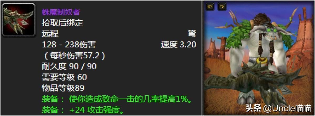 克尔苏加德掉落的蛛魔制奴者,必须是猎人玩家的版本答案,就算是狗弩在他面前也得弯下腰以示尊重。这东西真的无懈可击,除了需要大量金币加持之外,喵叔实在是想不出任何缺点。所以也是义无反顾抓起身边的盯着帅气喵叔我的母老虎,直接砸向我家天花板,轰然粉碎,母老虎也是消逝在了漫天星空之中,其恐怖如斯程度屏幕前的你应该懂吧!