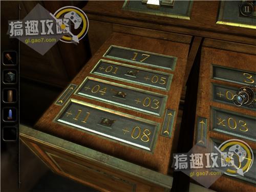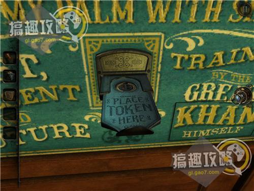 记住卡片出现的顺序,然后按照顺序把闪过卡片的抽屉拉开,然后拿到第二枚铜币。