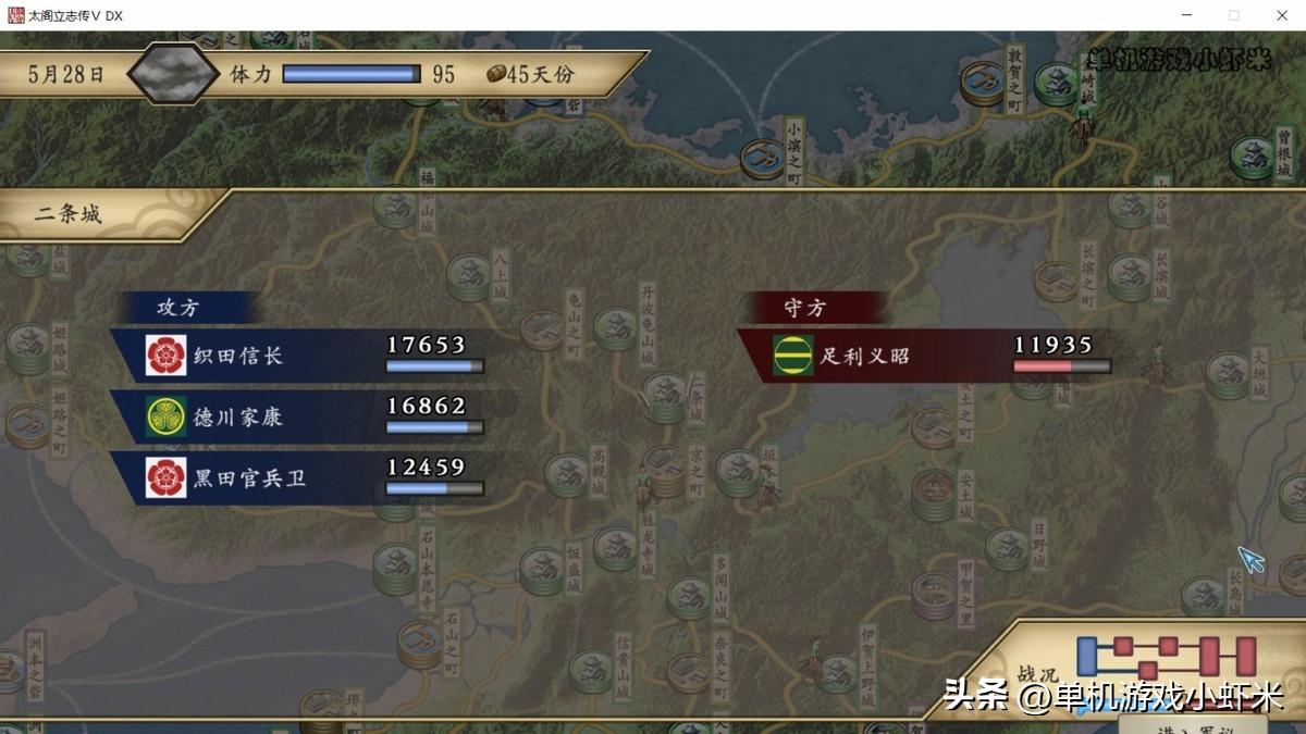 击败明智光秀之后,他逃跑,并在二条城拥护足利义昭成为大名。这时候,玩家回城,可以立刻组织大军进攻二条城,当然了,这一仗可以邀请援军了,把德川家康和猴子都叫上消灭叛军吧。