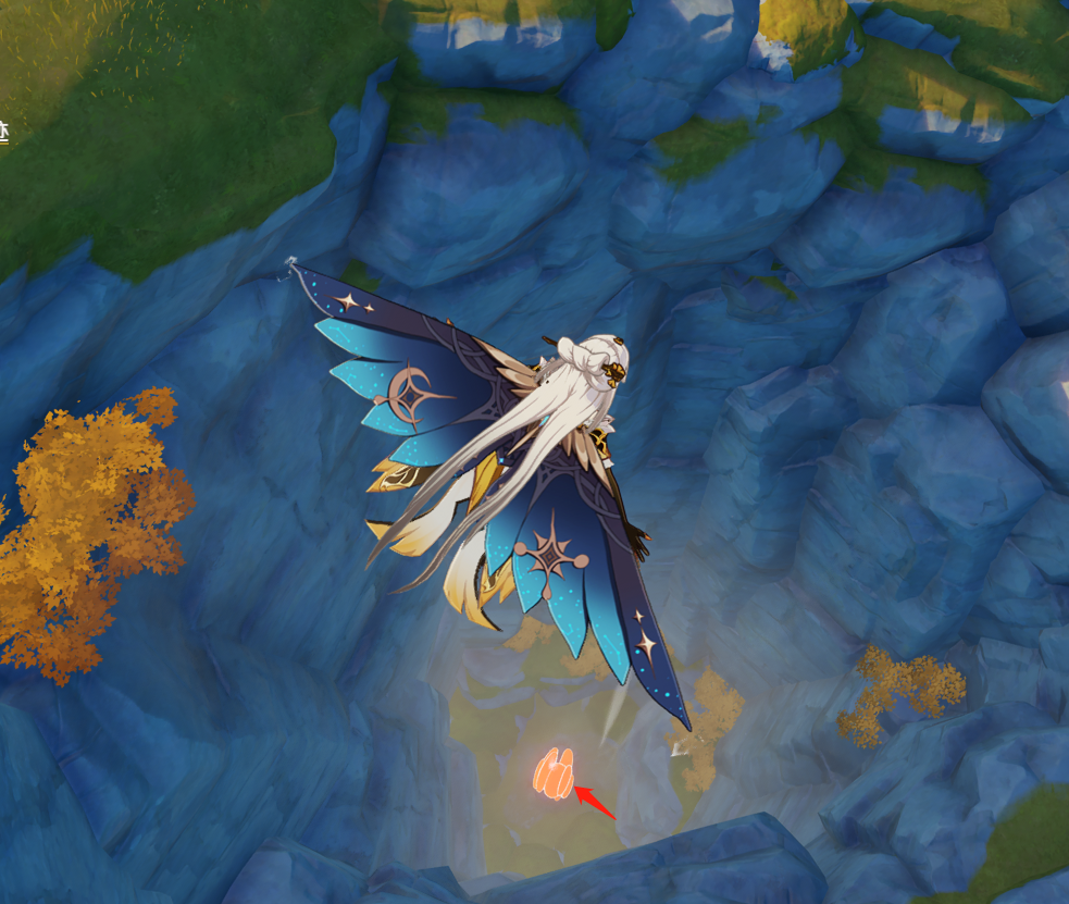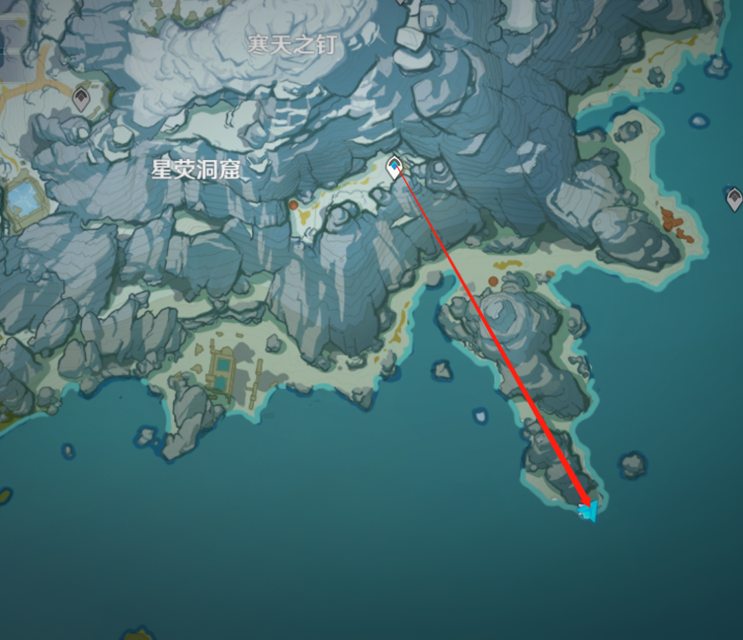 首先传送到龙脊雪山——星荧洞窟这边的锚点,然后往箭头指向标记处移动。