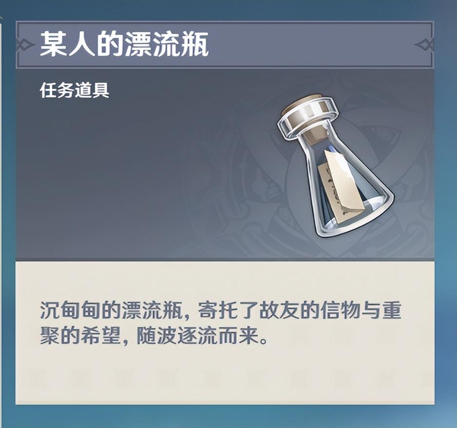 与之交互阅读会得到——某人的漂流瓶,可以背包中的任务道具栏中查看。