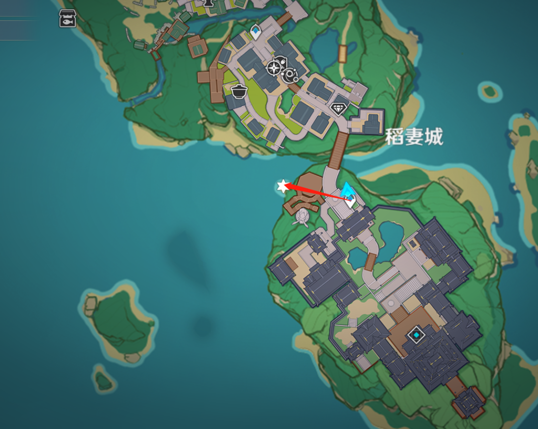 拿到漂流瓶后,我们传送到稻妻城这边锚点,还是往箭头指向处移动。