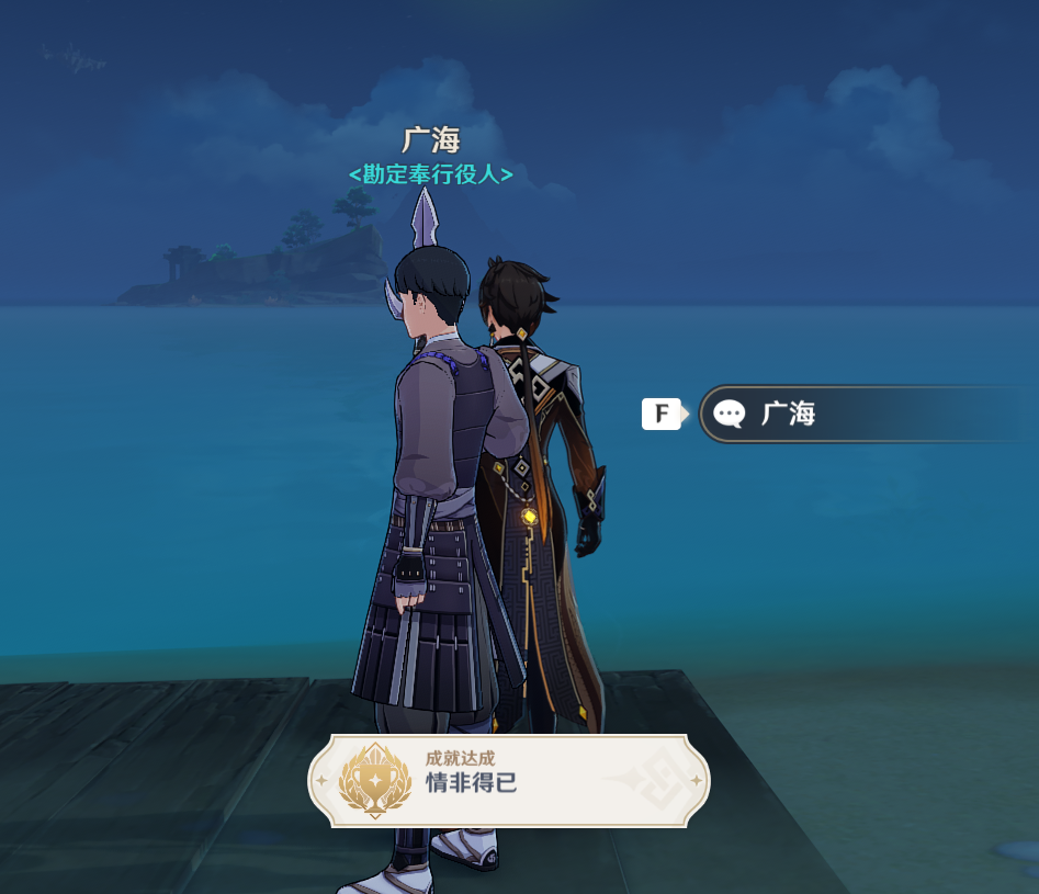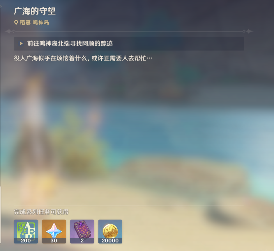 把广海的漂流瓶给大组胭儿后,我们回去稻妻离岛找广海提交任务。