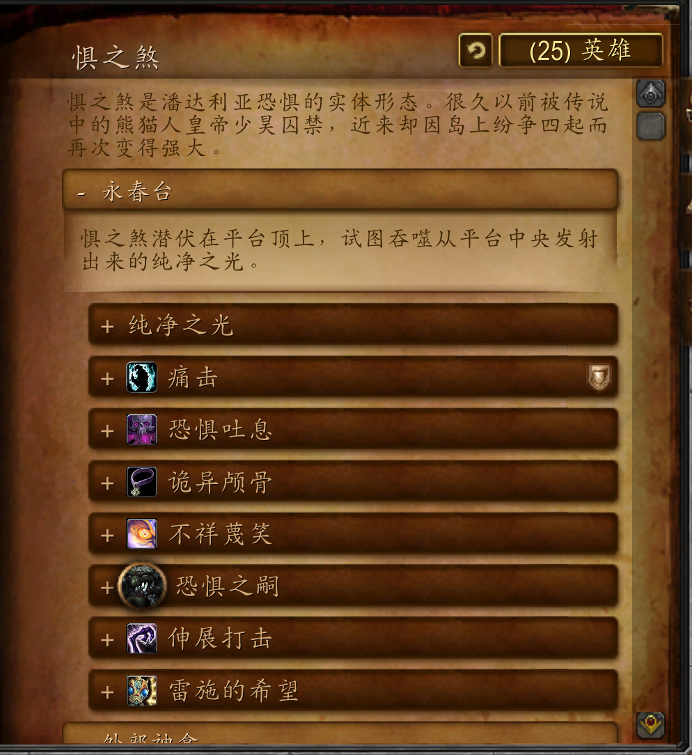 惧之煞是潘达利亚恐惧的实体形态,很久以前被传说中的熊猫人皇帝少昊囚禁,近来却因岛上纷争四起而再次变得强大。