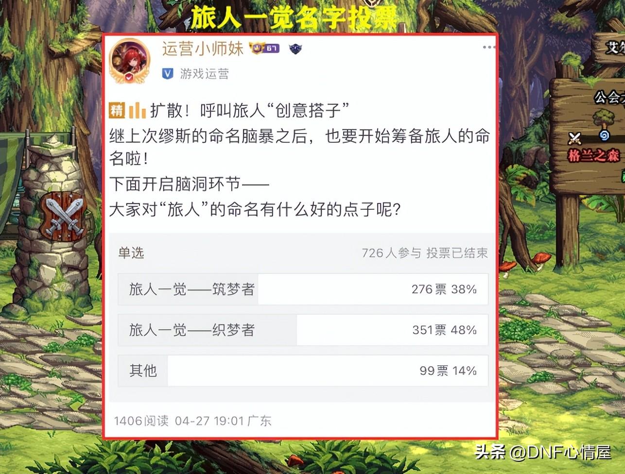 “小师妹”作为策划代言人,在新职业缪斯和旅人,没有出来的时候,就放出了觉醒名字投票选择,让玩家自己来决定。